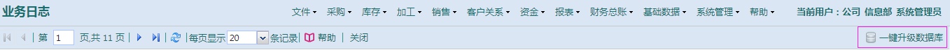 登录系统,进入模块“业务日志”,单击“一键升级数据库”。